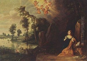St. Catherine In A Landscape Laureated By Putti (+ Mary Magdalene In Penitence In A Landscape With Putti; Pair)