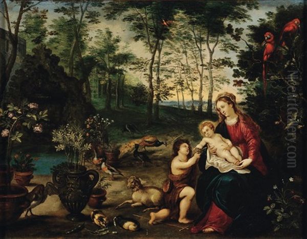 Vierge A L'enfant, Saint Jean A Leurs Cotes, Dans Un Paysage