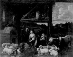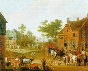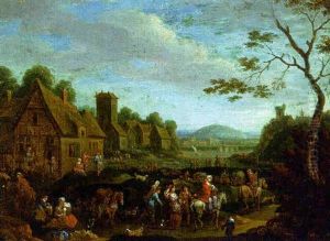 A Coastal Landscape With Peasants Selling Their Wares Outside An Inn
