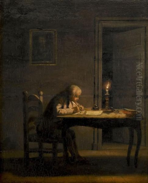 En Gosse Skriver Vid Ljus