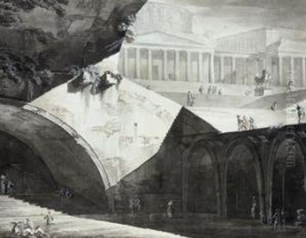 An Architectural Capriccio: Figures In The Vaults And On The Stepsof A Domed Palace