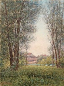 Kringflutet Olandskt Landskap Med Hus, Kyrka Och Trad