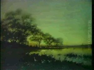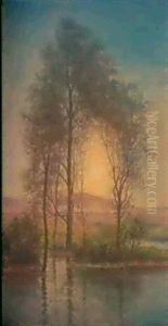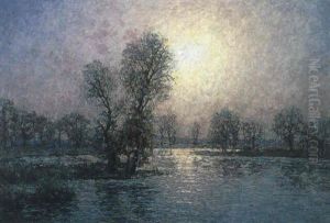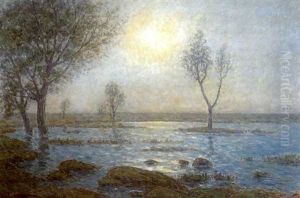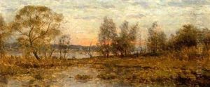 Solnedgang Over Franskt Flodlandskap