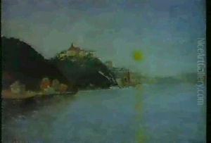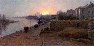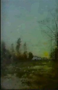 Landskap I Solnedgang - Motiv Fran Carolles, Normandie