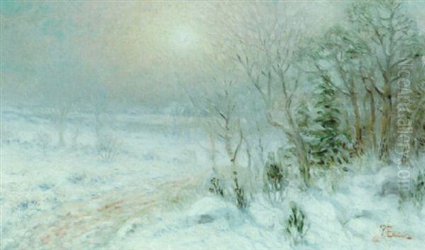 Solbelyst Vinterlandskap Oil Painting by Per Ekstroem