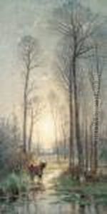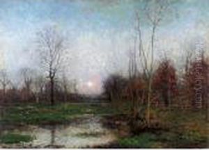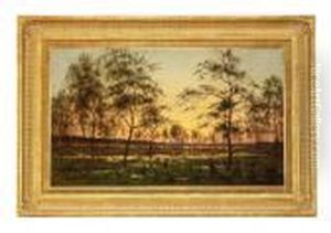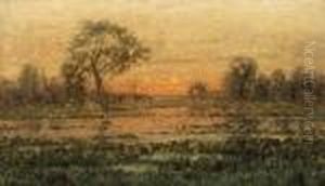 Les Inondations Du Bois De Boulogne Le Soir Au Coucher Du Soleil