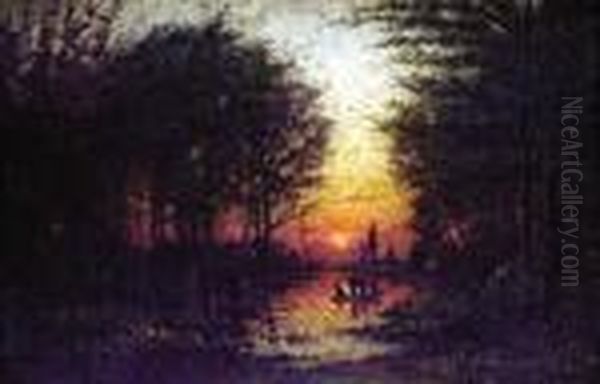 Les Inondations Du Bois De Boulogne Le Soir Au Coucher Du Soleil