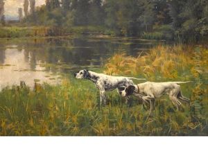 A Spaniel And Pointer In A Marshy Landscape