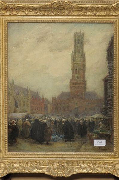 Belfry At Bruge, Market Day
