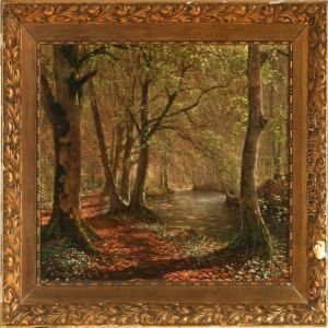 An Extensive View Over A Valley, With Figures In A Rowing Boat On A Lake.