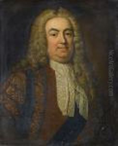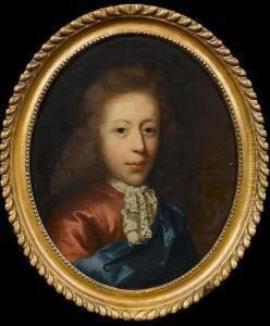 A Young Gentleman, Wearing Blue Cloak With Gold Fringe Pinned At His Left Shoulder, White Lace Jabot And Long Natural Wig.