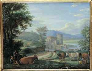 A Landscape With Cattle, A Milkmaid And Other Figures Promenading