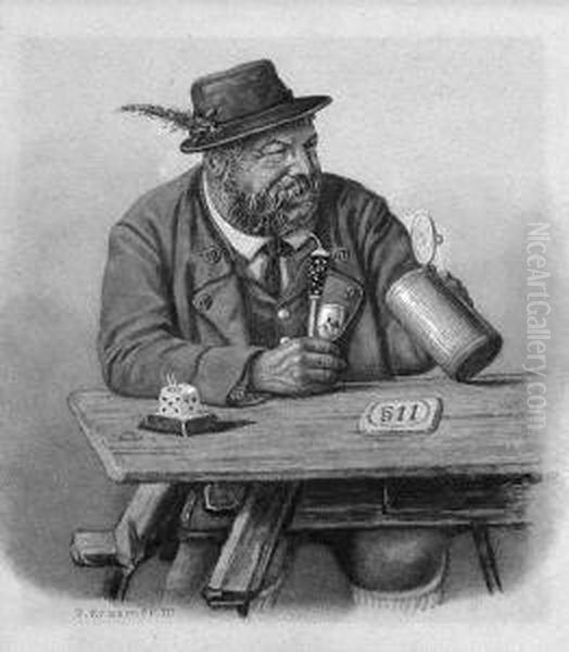 P. Iii. "biertrinker Mit Pfeife". Aquarell. Sign. Gebraunt. Ba: 18 X 17 Cm. Rahmen