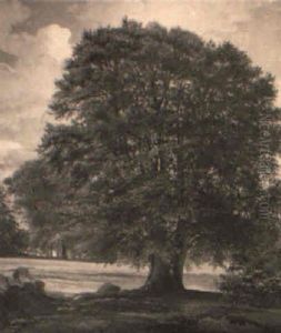 Prachtvolle Eiche Im Abendlichen Gegenlicht
