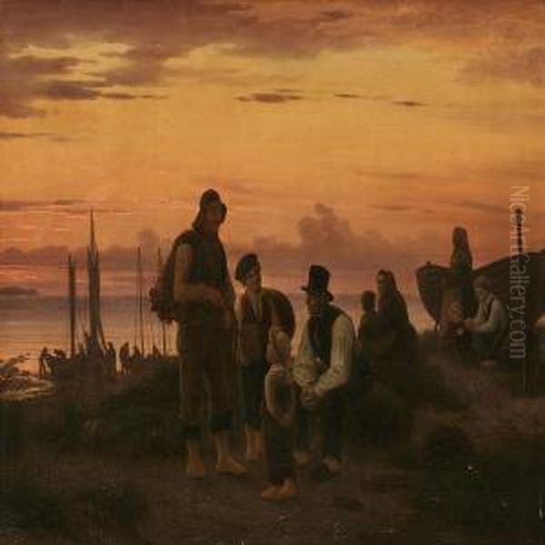 The Fishermen Of Hornbaek Gathering In The Eveningafter A Workday