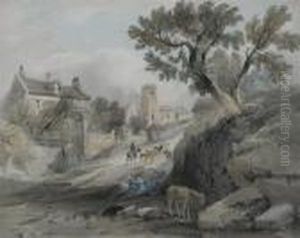 Figures And A Donkey Resting Outside A Village