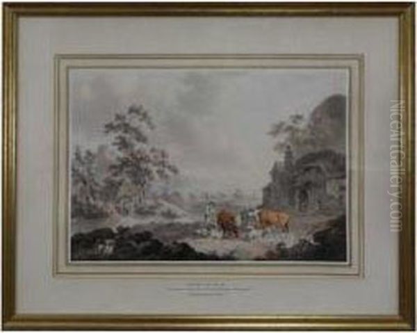 Herdsman, Milkmaid And Cattle Outside A Farmhouse