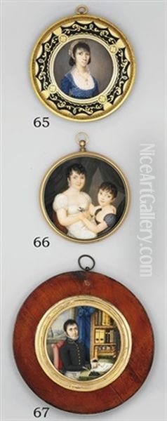 A Young Lady, In Red Sprigged Checked Blue Dress With Lace-bordered White Fichu...