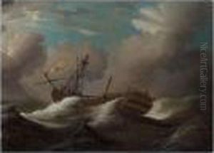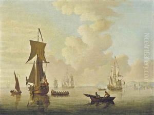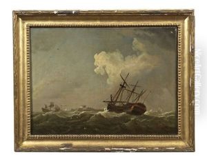 A Dutch Man-of-war And Other Shipping In A Calm At Anchor And A Dutch Man-of-war In Choppy Waters With Other Shipping Beyond (pair)