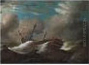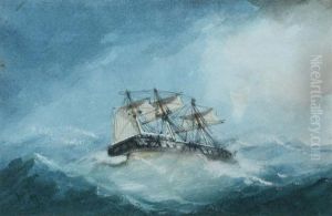 Sailing Ship And A Steam Sailing Ship In Rough Seas