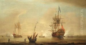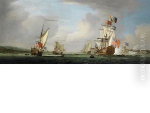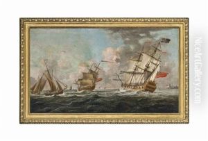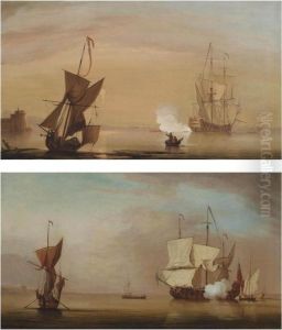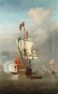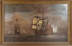 An English Frigate And A Ship Of The Line Giving A Salute To