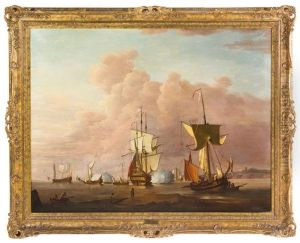 The Evening Gun: Men-o'-war And Barges In A Calm Sea