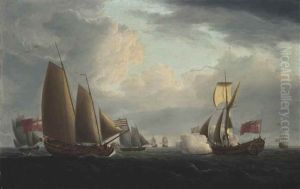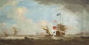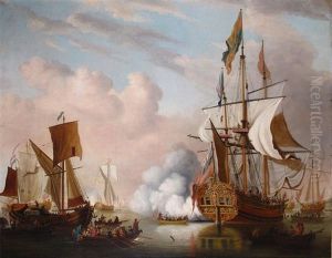 Admirality Yacht Firing A Salute, With Small Vessels Nearby