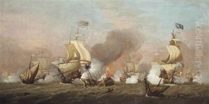The Battle Of Texel, 11th August 1673: Two Large First Rates, English And Dutch, Engaged In A Fierce Broadside Duel, With H.r.h. Prince Rupert's Flagship Royal Sovereign In Action Astern Of Them