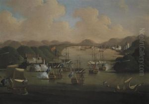A Bustling Inshore Anchorage, With A Flagship Firing Salutes To Announce Her Readiness To Sail