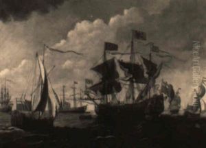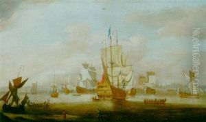 A Late Stuart Royal Yacht Leaving The Fleet Anchorage, The Flagship Saluting Her Departure