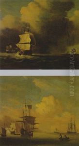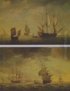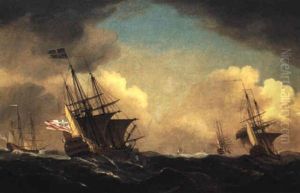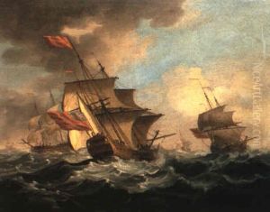 A British Man Of War In A Strong Breeze With East Indiamen In The Distance