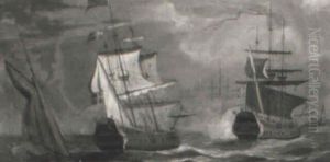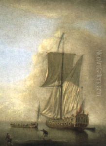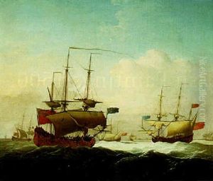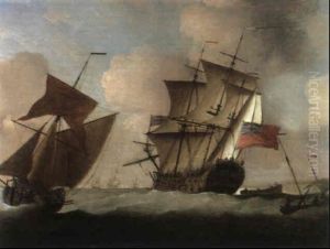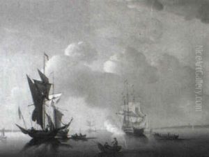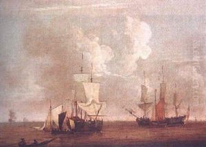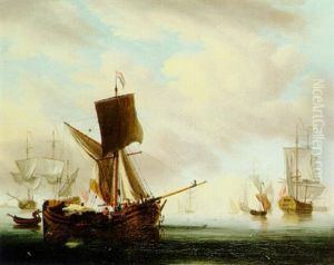 A British Man Of War And Dutch Fishing Vessels Off The Coast In A Calm