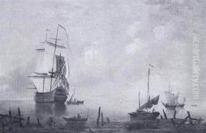 English Man-o-war At Anchor In A Harbour, With Coastal Vessels