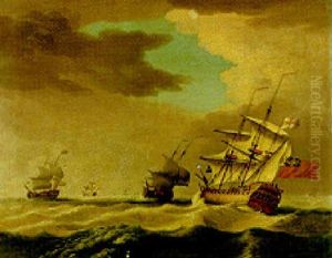 A Large Three-decker Heeling In The Swell Amongst Other Shipping Offshore