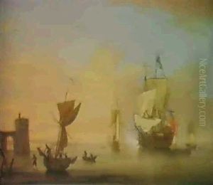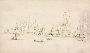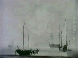 Men-o'-war At Anchor Off The Coast, Drying Their Sails