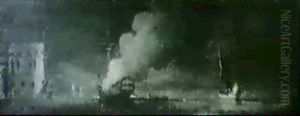 A Ship On Fire In A Moonlit Estuary By A Castle