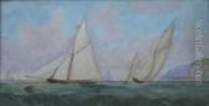 An Admiralty Yacht joining a Squadron of the Red sailing offshore