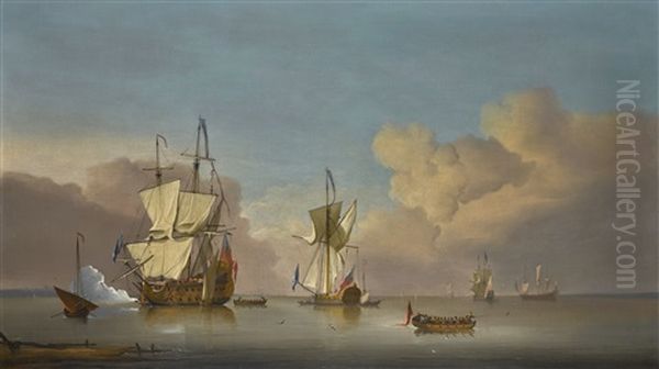 The Evening Gun: Men-o'-war And Barges In A Calm Sea