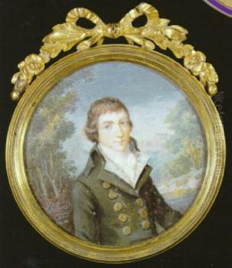 Portrait Miniature Of A Young Gentleman, In A Green Coat With Green Covered Buttons, White Waistcoat And Lace Cravat, Powdered Hair