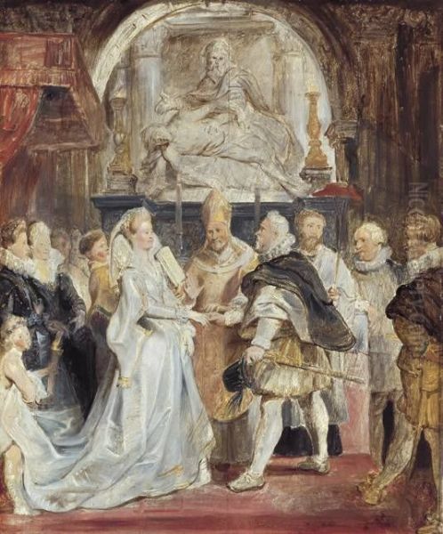 Bring the timeless beauty of (studio of) Rubens, Peter Paul's Die Vermahlung "in procuratione" (Skizze zum Medici-Zyklus) into your home with a handmade oil painting reproduction. Carefully recreated on canvas by skilled artists using traditional techniques, this piece captures the delicate brushwork, subtle light, and vibrant color of the original masterpiece. With museum-level quality and rich texture, it brings elegance and artistic depth to any space. Enjoy free shipping and make this masterpiece a part of your personal collection.