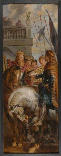 Bring the timeless beauty of (studio of) Rubens, Peter Paul's Kings Clothar and Dagobert dispute with a Herald into your home with a handmade oil painting reproduction. Carefully recreated on canvas by skilled artists using traditional techniques, this piece captures the delicate brushwork, subtle light, and vibrant color of the original masterpiece. With museum-level quality and rich texture, it brings elegance and artistic depth to any space. Enjoy free shipping and make this masterpiece a part of your personal collection.