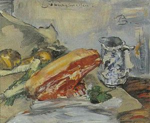 Opstilling Med Glaskaraffel, Kande Og Frugter