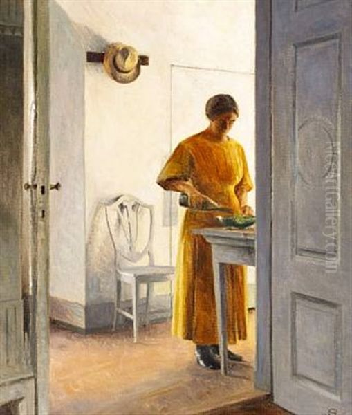 Bring the timeless beauty of Peter Vilhelm Ilsted's Interior From Liselund. A Young Woman Tossing The Salad into your home with a handmade oil painting reproduction. Carefully recreated on canvas by skilled artists using traditional techniques, this piece captures the delicate brushwork, subtle light, and vibrant color of the original masterpiece. With museum-level quality and rich texture, it brings elegance and artistic depth to any space. Enjoy free shipping and make this masterpiece a part of your personal collection.