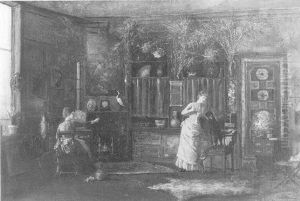 Interior With A Couple, The Man Is Smoking A Cigar While Listening To His Wife