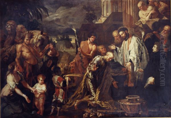 Bring the timeless beauty of Peter Ykens's Saint Francis Xavier baptizes a pagan king into your home with a handmade oil painting reproduction. Carefully recreated on canvas by skilled artists using traditional techniques, this piece captures the delicate brushwork, subtle light, and vibrant color of the original masterpiece. With museum-level quality and rich texture, it brings elegance and artistic depth to any space. Enjoy free shipping and make this masterpiece a part of your personal collection.
