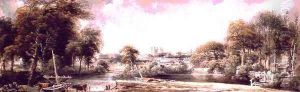Great Mitton, Lancashire, from the Ribble, with Longridge Fell beyond