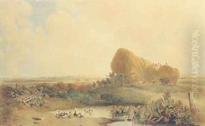 Harvesters in the fields above the Valley of the Lune, Cumbria