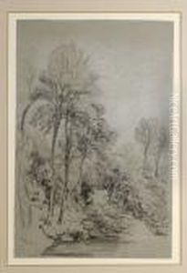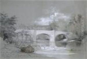 Figures On A Bridge In A Wooded River Landscape