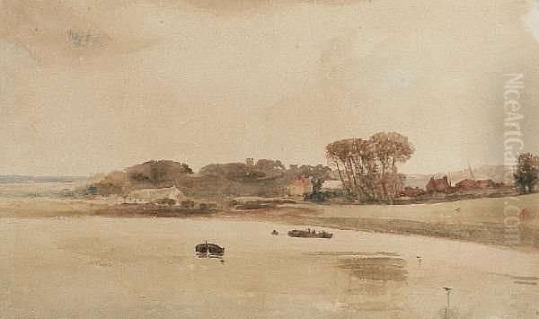 A River Scene With Houses Beyond