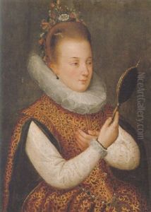 Portrait Of Magdalena, Countess Palatine Of Neuburg And Dutchess Of Julich-berg (1587-1628), Half-length, In A Red Bejewelled Dres...